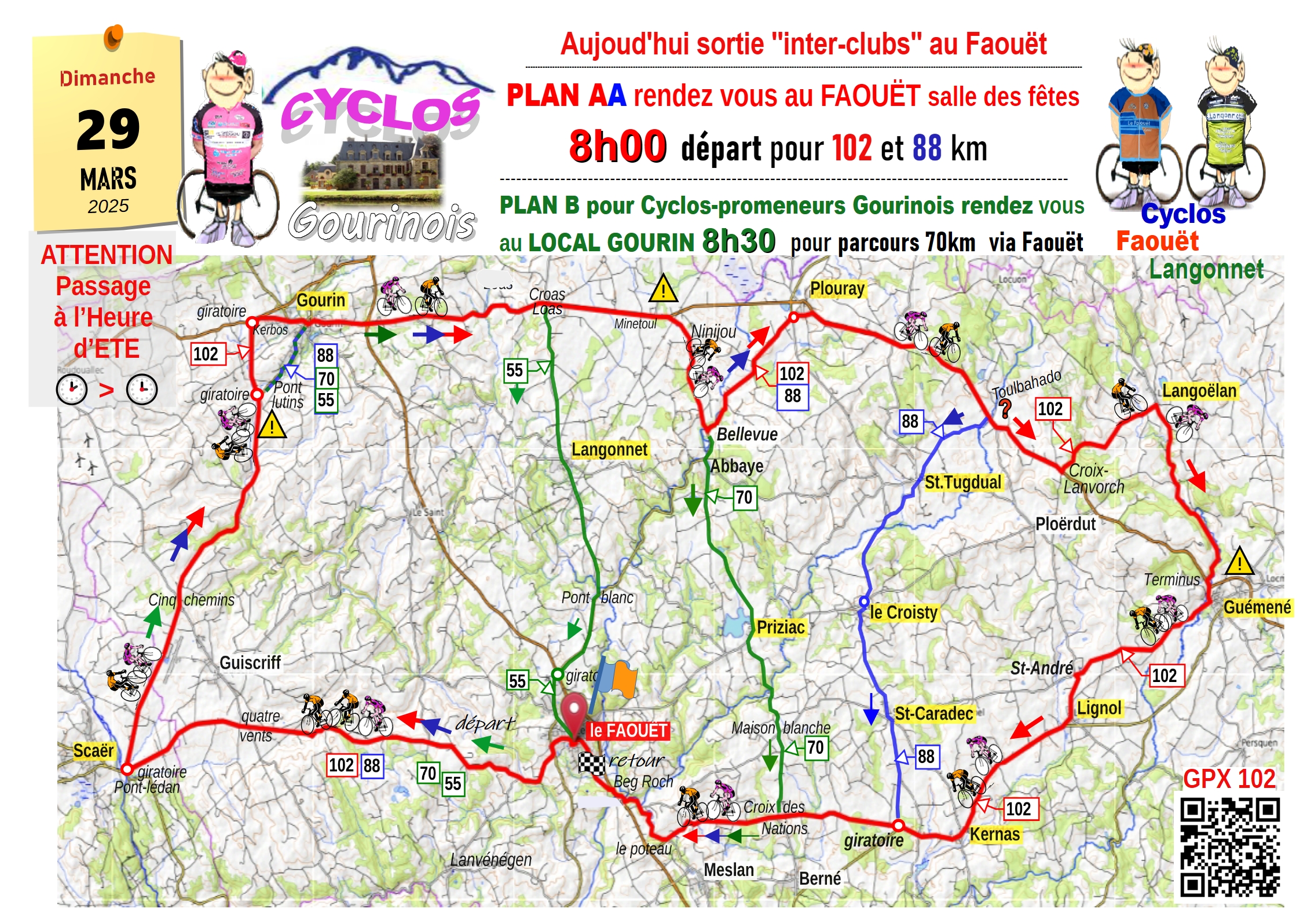 rdv à la salle des fêtes du Faouët pour départ à 8h00 pour 102 - 88… km
