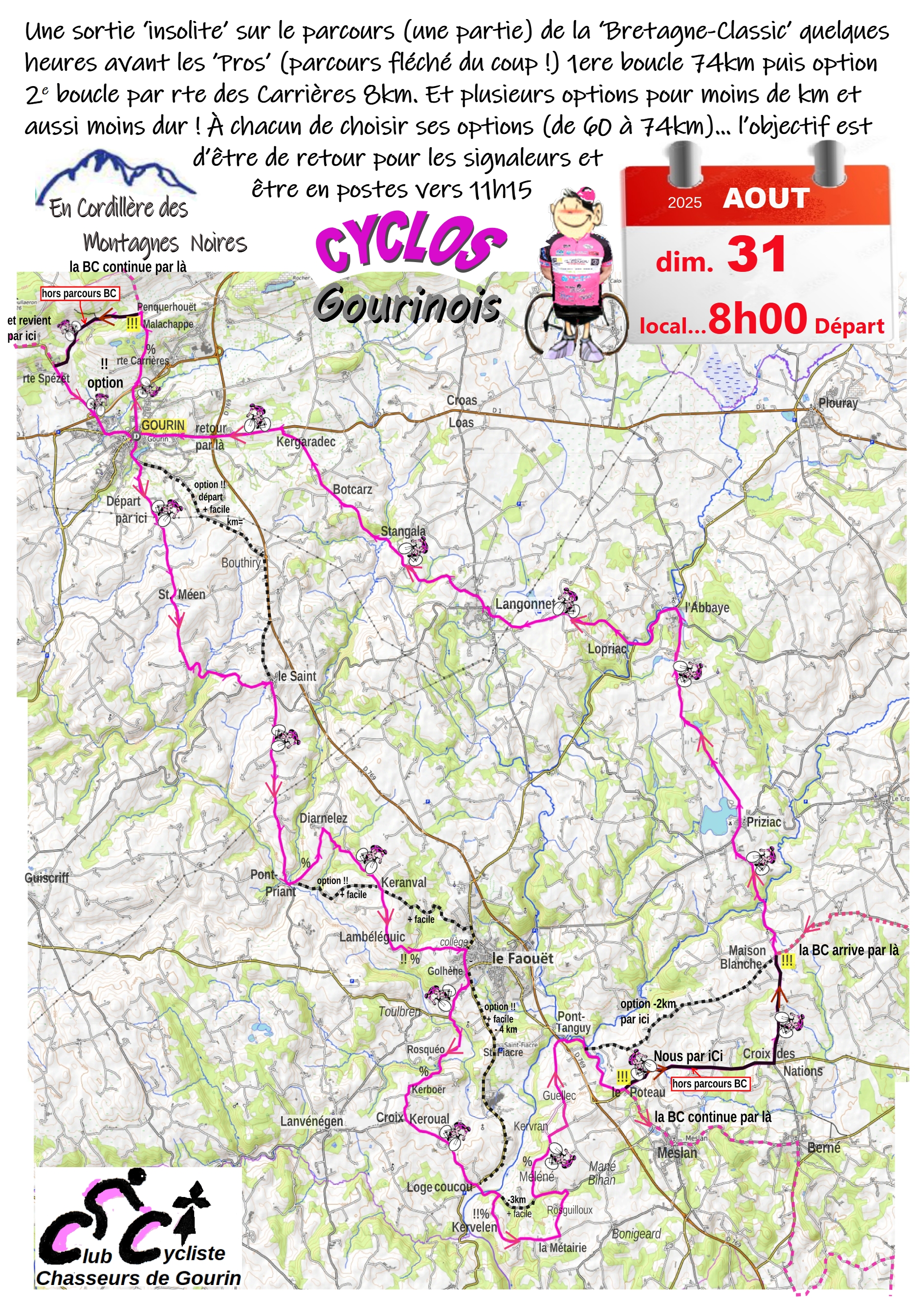 * pour les cyclos qui souhaitent faire moins km ? départ possible de Plouray (si rendre en voiture )