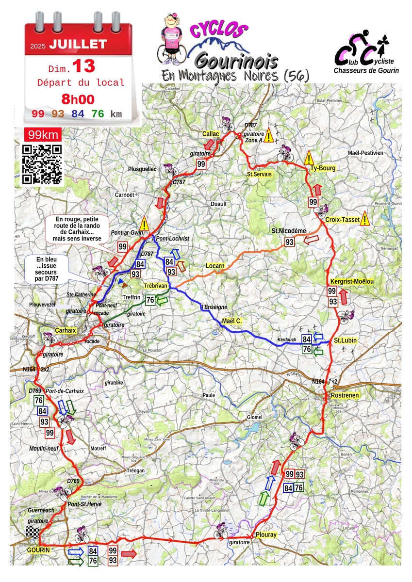 RB du parcours 99 km --- en violet parcours communs 99 - 93