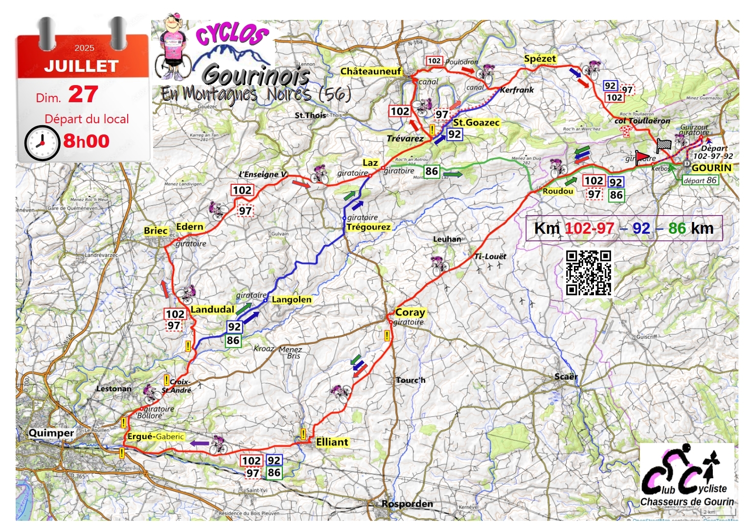 LAZ jonction avec 92 et 86 ; passez le centre bourg, puis au giratoire prendre 2e > vers Trévarez pour 102-97-92