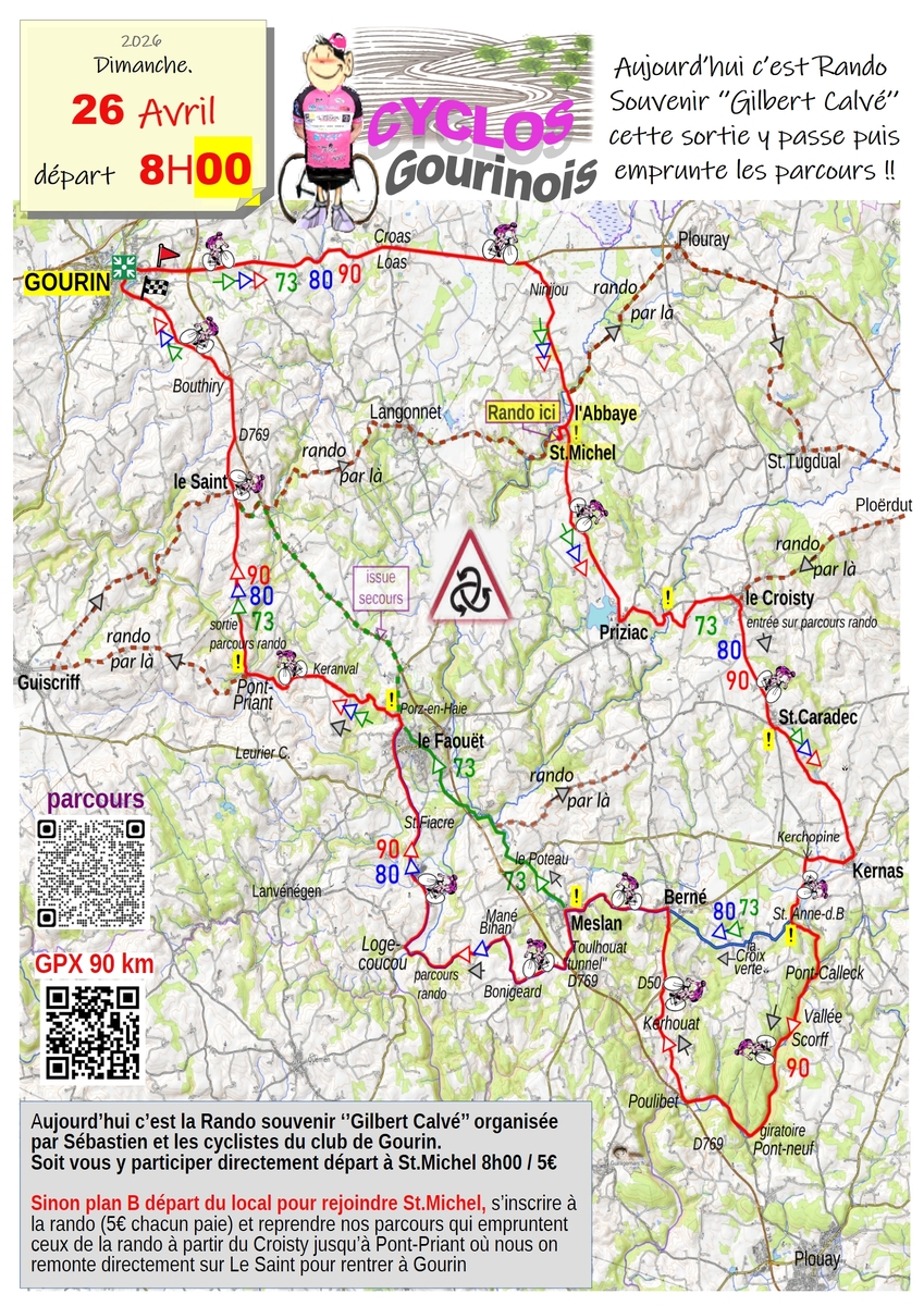 Aujourd’hui 26 avril c’est la Rando souvenir ‘’Gilbert Calvé’’ organisée par Sébastien et les cyclistes du club de Gourin.