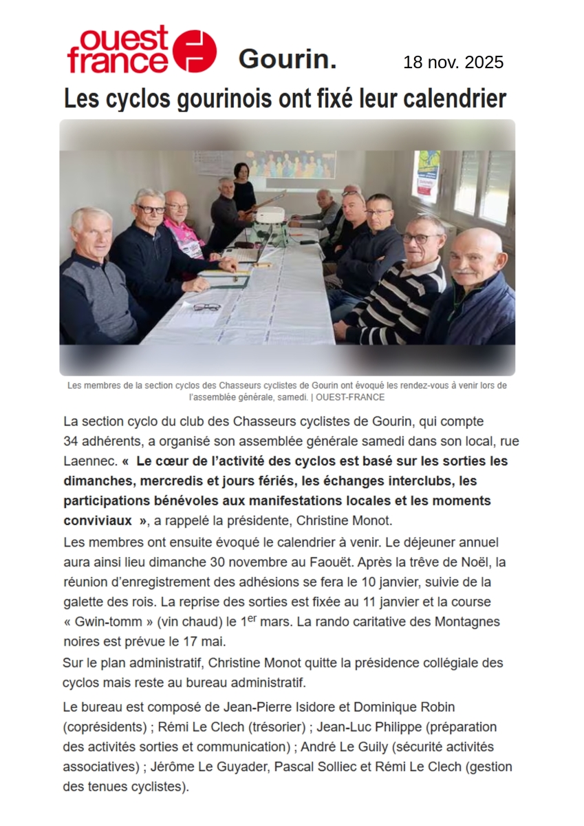 en Montagnes-Noires (56) - groupe du Club Cycliste Gourin