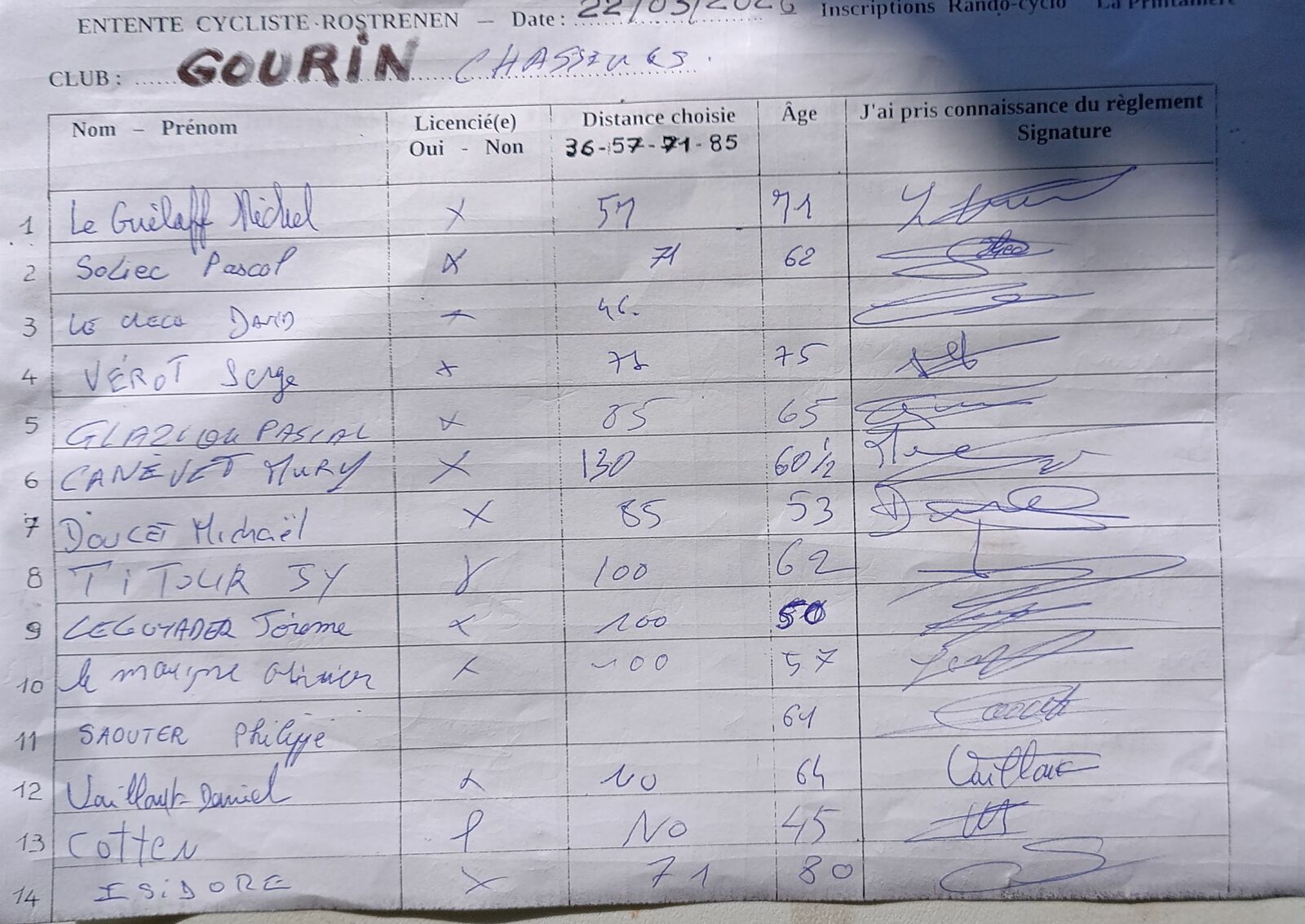Sortie 20 cyclos via rando Rosporden 15 mars de 0 à 7°